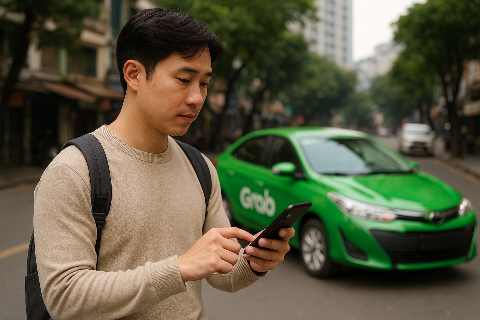 하노이에서 가장 유용한 교통 앱은 단연 **Grab(그랩)**입니다.