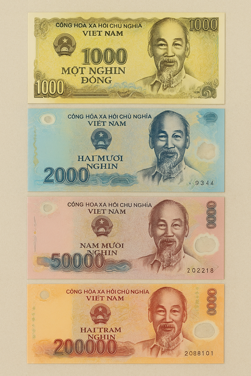 베트남은 **동(VND)**을 사용하며, 1,000동, 10,000동 등 고액권이 많은 나라입니다.