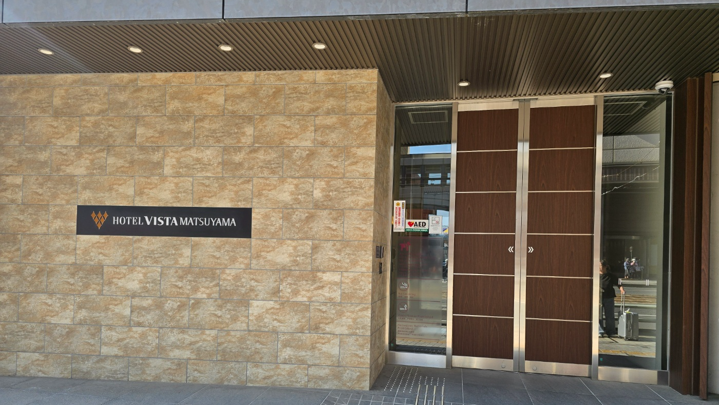 오카이도에 도착한 버스에서 내리자마자 10m 거리에 있는 숙소, 호텔 비스타 마쓰야마로 향했습니다. 오카이도 번화가 바로 앞, 트램 정류장도 도보 1분 거리, 마쓰야마성 리프트 타는 곳까지는 도보 6분 거리로 접근성이 정말 최고였습니다. 실내도 깔끔하고 프런트 직원의 응대도 친절하여 무리 없이 체크인을 마쳤어요.