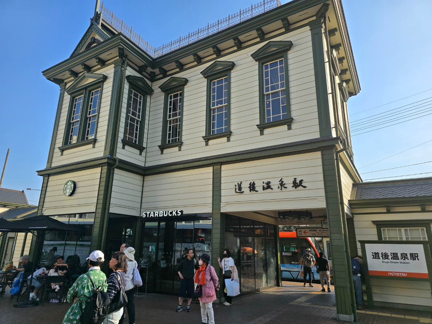 도고온천역에 내리자마자 레트로한 분위기에 압도당했습니다. 작은 스타벅스 옆의 아담한 역, 그리고 광장에는 봇짱 카라쿠리 시계와 봇짱 열차가 자리하고 있어 도고온천 마을에 들어섰다는 실감이 확 들었어요.