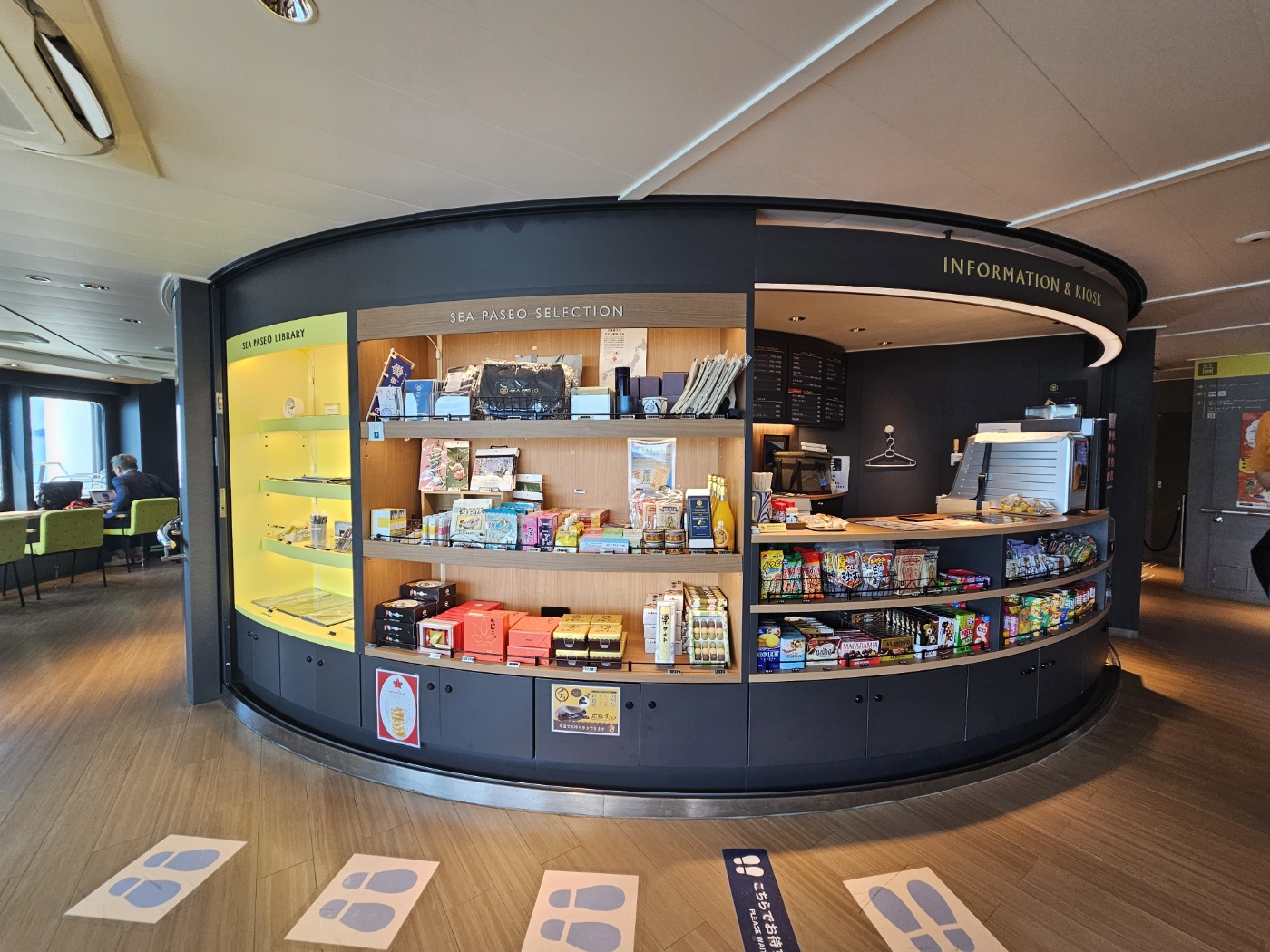 페리에 탑승해 2등석 객실에 자리를 잡았다. 창밖으로 보이는 푸른 바다와 섬들은 일본 내륙과 시코쿠를 잇는 세토내해의 매력을 제대로 느끼게 해준다. 좌석은 넉넉했고 큰 창문 덕분에 바깥 풍경을 실컷 구경할 수 있었다. 선상 카페와 간이 매점도 있어 간단한 음료나 간식도 사 먹을 수 있었다.